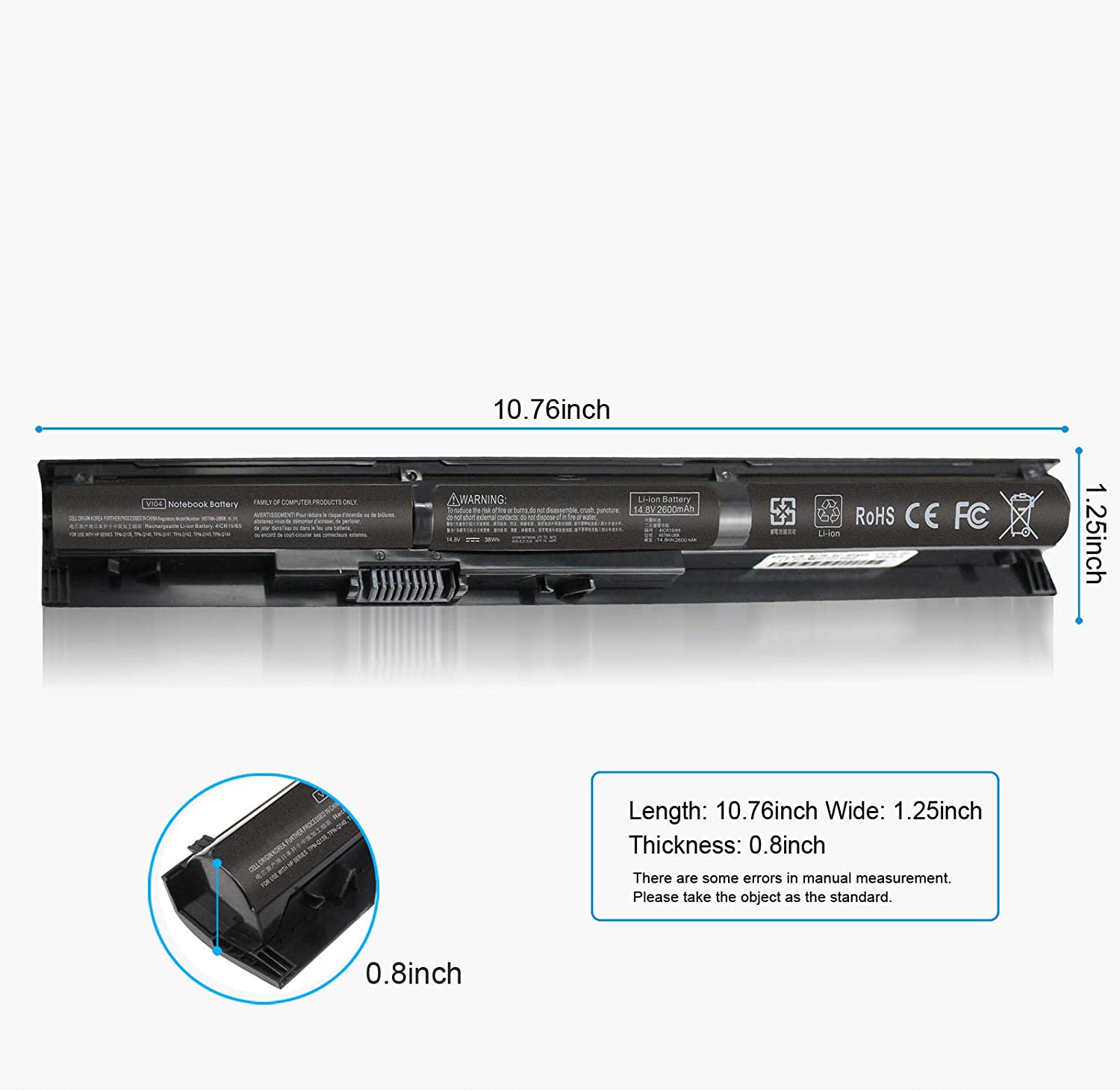 Compatible Part Numbers hp, pavilion, vi04 battery, vi04xl battery, vi04 laptop battery, vi04 hp battery, 756478-221, 756478-241, 756478-421, 756478-422, 756478-541, 756478-851, 756479-221, 756479-241, 756479-421, 756479-541, 756480-221, 756480-241, 756480-421, 756480-541, 756481-221, 756481-241, 756743-001, 756744-001, 756745-001, 756746-001, G6E88AA#ABB, G6E88AA, HSTNN-DB6I, HSTNN-DB6K, HSTNN-LB6J, HSTNN-LB6K, J6U78AA, PRO X2 410 G1, PROBOOK 440 G2, PROBOOK 445 G2, PROBOOK 450 G2, PROBOOK 455 G2, TPN-Q139, TPN-Q140, TPN-Q141, TPN-Q142, TPN-Q143, TPN-Q144, V104, VI04, VI04048, VI04048-CL, VI04XL,  ",